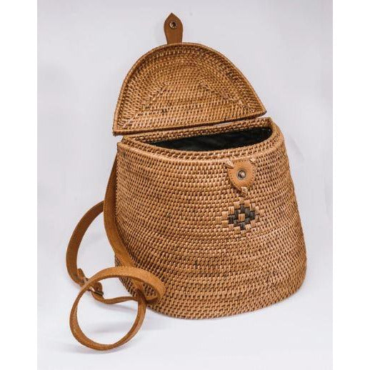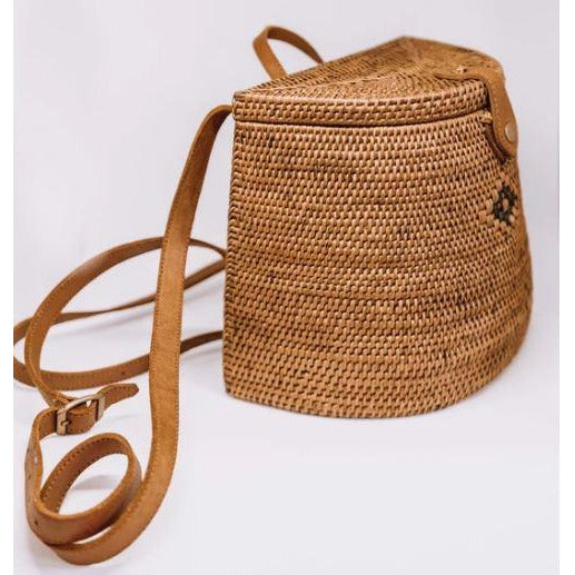 Made from Ata grass, which is a vine native to the volcanic foothills on the island of Bali. Once the bag is woven it is dried in the sun and toasted over coconuts, which strengthens the rattan and gives them it a beautiful golden color.