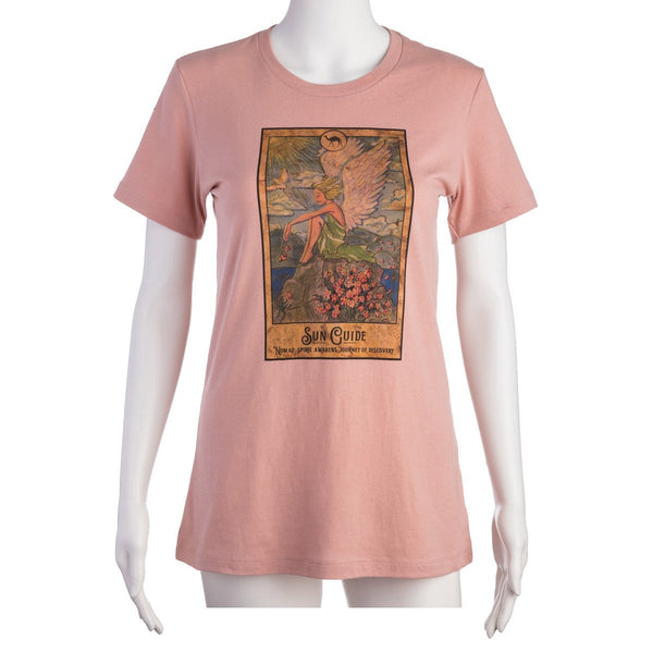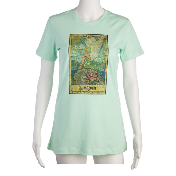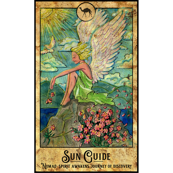 With wings alight and petals in the wind, our taro card-inspired Sun Guide will be a kindred spirit for anyone who is a wanderer at heart. Available in four colors, the artisan-designed graphic of a nomadic spirit sitting atop a mountain, basking in the sunshine, will be a conversation starter.